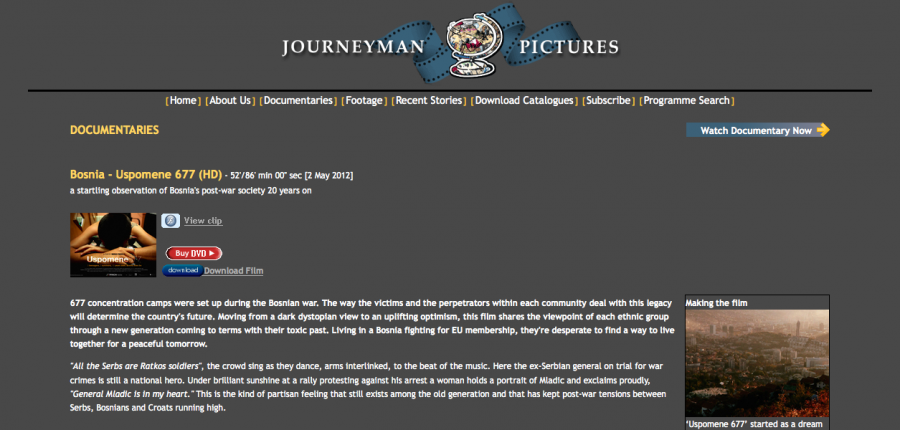 We are very close to finalizing an agreement with our documentary sales agent JOURNEYMAN PICTURES, with regards to them taking over our beloved ‘Uspomene 677’. We are very excited by the progress and hope to be closing soon. The documentary will then be available on their website for VOD and DVD. Make sure to watch out for it! We are also close to completing the new website for Uspomene 677 which will become www.uspomene677.com.